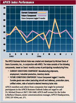 | SHIPMENTS | EMPLOYMENT | PRODUCTION | INVENTORY | CURRENT COMPONENT | TOTAL APICS INDEX* | ||
